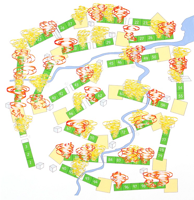 Alice AYCOCK, Devil Whirlwinds on Green Squares: From the Gameboard Series #5, 2011