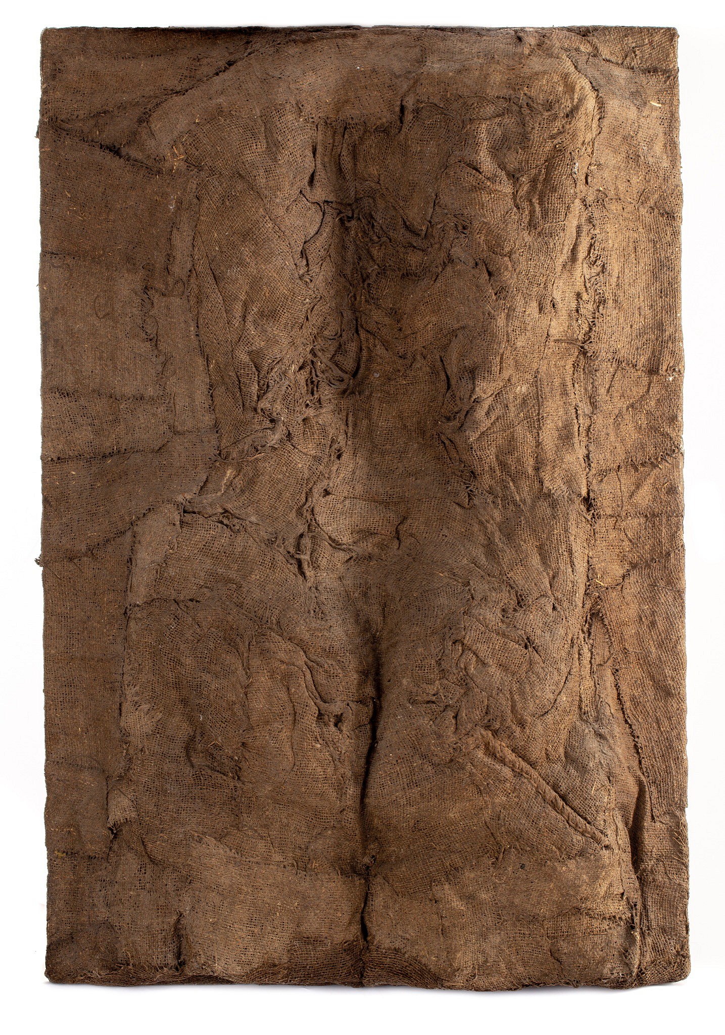 burlap and resin on wood, 35 1/2 x 23 1/2 x 5 in. (90.2 x 59.7 x 12.7 cm)